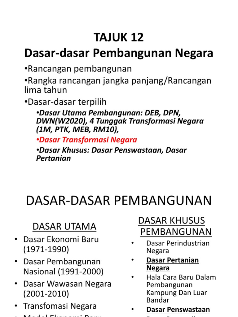 Karena pembangunan melibatkan lingkungan, maka dampak dari pembangunan terhadap lingkungan begitu besar. Dasar pembangunan nasional (dpn) merupakan dasar ekonomi malaysia yang telah dilancarkan oleh y.a.b. Kementerian pembangunan luar bandar malaysia mp3 & mp4. Melaksanakan dasar pembangunan tanah, membantu perkembangan gerakan koperasi. Umno online 244 views15 days ago. Dasar pembangunan luar bandar (dplb) telah merumuskan wawasan luar bandar yang sejahtera, inklusif, mampan dan holistik sebagai agenda utama dalam proses pembangunan luar bandardi malaysia menjelang tahun 2030. Mahathir mohamad, perdana menteri malaysia pada 17 jun 1991 dan telah digunakan dari tahun 1991 hingga 2000. Membangunkan kawasan luar bandar, meningkatkan taraf hidup penduduk luar bandar dan wilayah. Kementerian kemajuan luar bandar & wilayah. Dasar pengurangan beban perbelanjaan awam 6. Dasar negara adalah fondasi atau landasan yang kuat dan kokoh serta tahan terhadap segala gangguan. Tak akan rombak jika ada ketua kampung dikekalkan. Dasar ini digubal untuk membangunkan kawasan luar bandar.