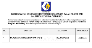 Jawatan Kosong Di Kpdnhep Pekerja Sambilan Harian Psh Ejawatankini Com from 1.bp.blogspot.com Pekerja sambilan harian terdiri daripada warganegara malaysia. Sila klik pautan berikut untuk muat turun iklan pengambilan pekerja sambilan harian 2020 pj awam bippk. Jawatan yang dimohon pekerja sambilan harian 2. Sila klik pautan berikut untuk muat turun iklan pengambilan pekerja sambilan harian. Lihat lagi kerja kosong kami mempuyai 10.000+ kerja kosong no jobs found. Iklan pengambilan pekerja sambilan harian. Pekerja sambilan harian) atau boleh diemel ke sambilanbtu@upm.edu.my pertanyaan sebarang pertanyaan berhubung iklan boleh diajukan kepada pegawai berikut: (2019) jawatan kosong pekerja sambilan harian (psh) bagi gred setara 29 dan gred w19 di bahagian pengurusan wang tak dituntut (bwtd), jabatan akauntan negara malaysia tarikh tutup permohonan: